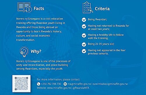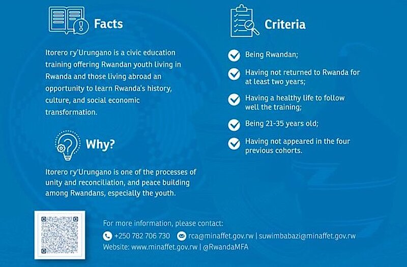 The Ministry of Foreign Affairs and International Cooperation of Rwanda would like to invite Rwandan youth living in the Netherlands and the Baltic States to attend Itorero ry’Urungano 2022.