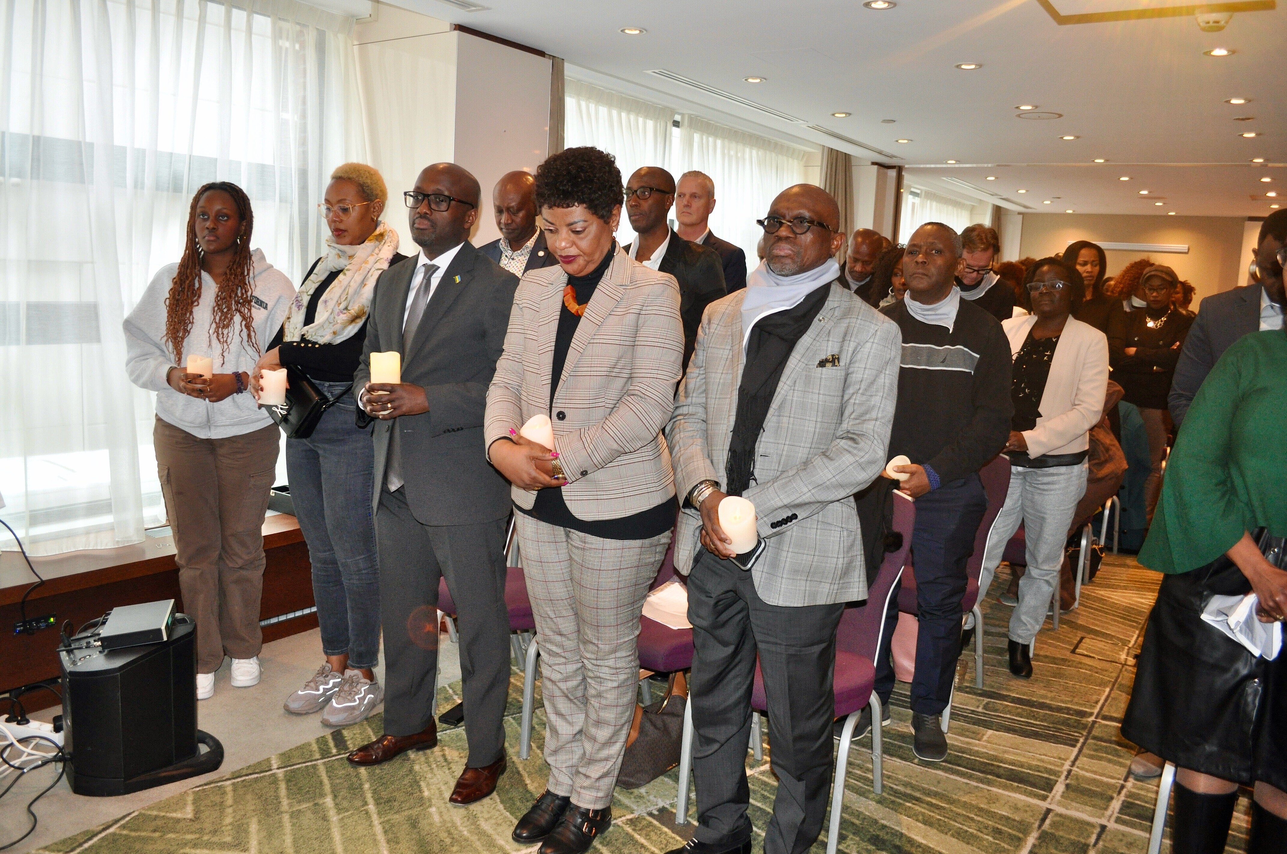 In the evening of the 7th of April, Ambassador Olivier J.P. Nduhungirehe joined the Rwandan Community in the Netherlands at a Night Vigil organized by Ibuka Nederland at the Hilton Hotel in The Hague to mark the beginning of the commemoration period of the 1994 Genocide against the Tutsi in Rwanda.